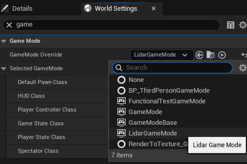 In the GameMode Override dropdown, select LaserScannerGameMode.