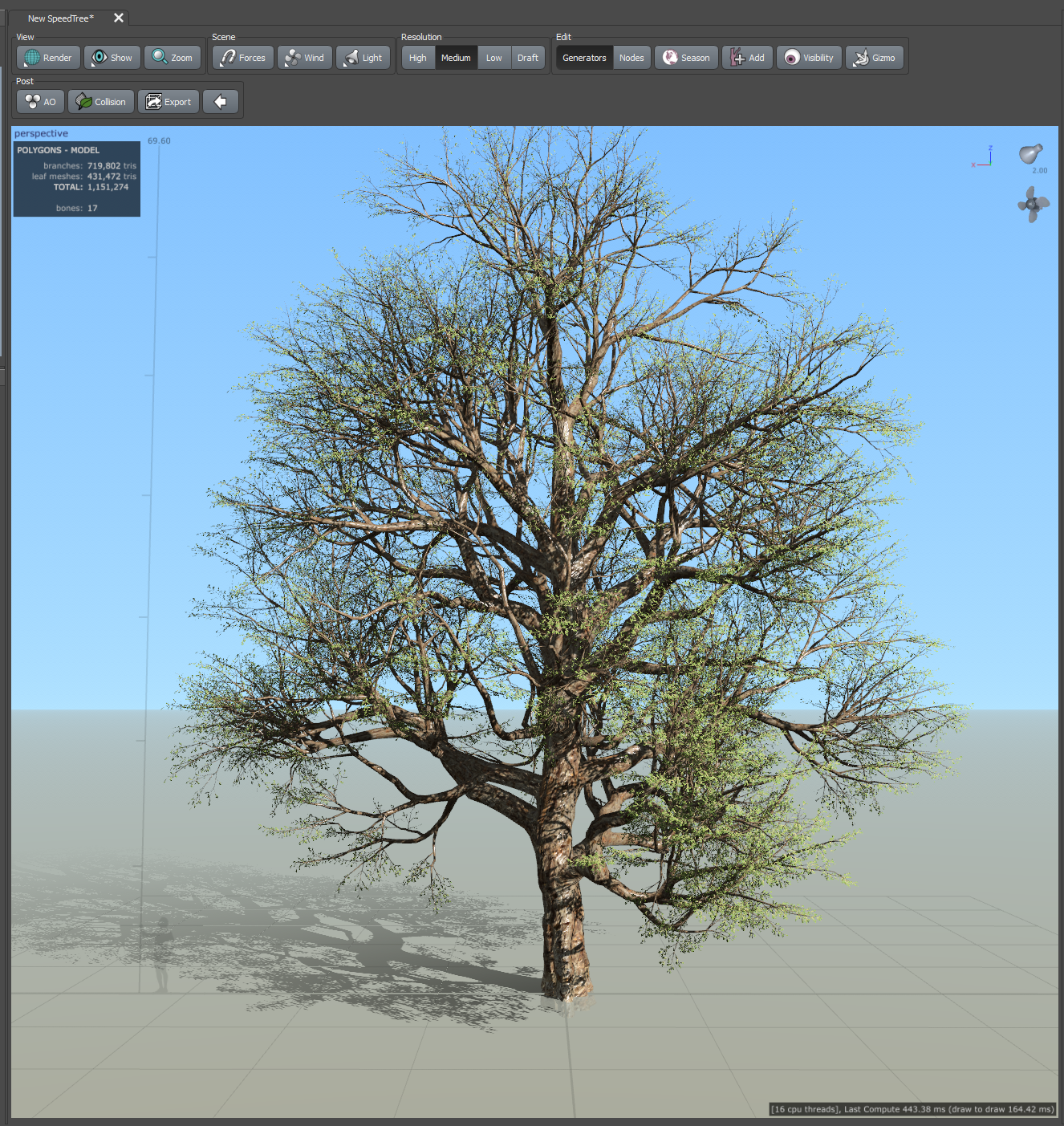SpeedTree Access: You will need access to the SpeedTree software, which can be obtained here. This tutorial uses a tree model that comes bundled with SpeedTree, but depending on your needs, you may want to make your own tree or purchase a species-specific model from the SpeedTree store. The process we'll cover applies to any tree model, so feel free to use one that suits your project.