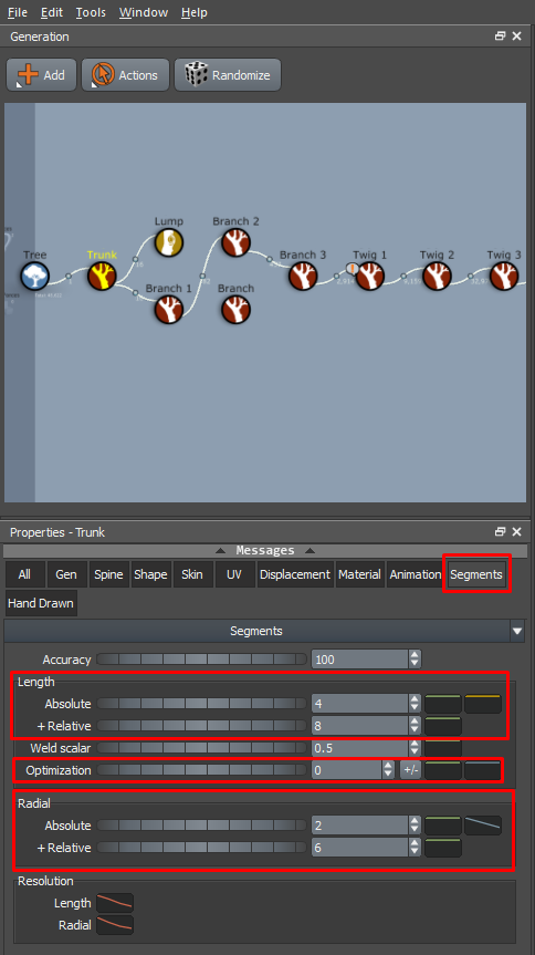Select the Generator: Start by selecting the Generator you want to enhance. Generators control different parts of the tree, like branches, leaves, or the trunk. For most trees, the branch generators will be a significant focus since they form the bulk of the structure.
