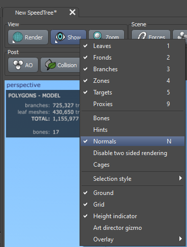 To begin, launch SpeedTree and open the.spm file of the tree model you'd like to transform into a point cloud. The first step is to assess the surface normals of your model, which are crucial for determining the fidelity of the resulting point cloud. Surface normals give you an insight into how finely detailed your point cloud will be since the vertices of your model will be treated as points in the point cloud.
