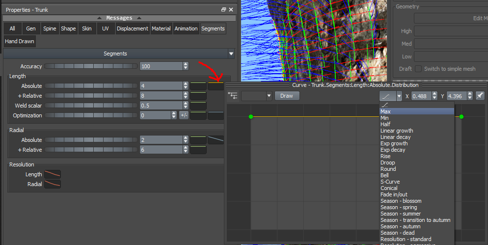 Click on this line, and from the dropdown, select Max. This will clip the yellow line to the top of the curve, ensuring that the maximum number of segments (and thus surface normals) is consistently applied throughout the length of each segment.